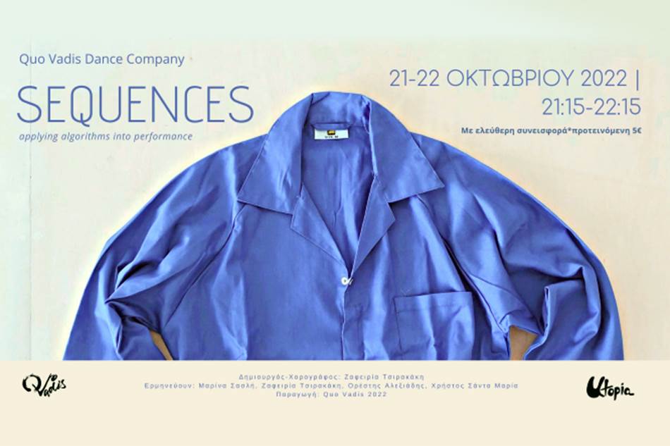 Η ομάδα χορού Quo Vadis παρουσιάζει την performance SEQUENCES η οποία δημιουργείται σε πραγματικό χρόνο μέσω της ενεργής συμμετοχής των θεατών. Αποτελεί μέρος της ευρύτερης χορογραφικής έρευνας της χορογράφου Ζαφειρίας Τσιρακάκη, όπου μελετά την ανάδειξη ενός παραγόμενου καλλιτεχνικού αποτελέσματος μέσω της χρήσης μαθηματικών εργαλείων. (if it is possible to create movement algorithms that when applied, they will create an avante-grand dance piece, pleasant to every audience.) Αυτή τη στιγμή βρίσκεται σε ένα από τα στάδια των παρουσιάσεων σε κοινό. Η ομάδα καλεί θεατές όλων των ηλικιών και πεδιών να γίνουν αρωγοί με την παρουσία τους στον κύκλο των παρουσιάσεων αυτών, συμμετέχοντας στην πειραματική διαδικασία της performance.