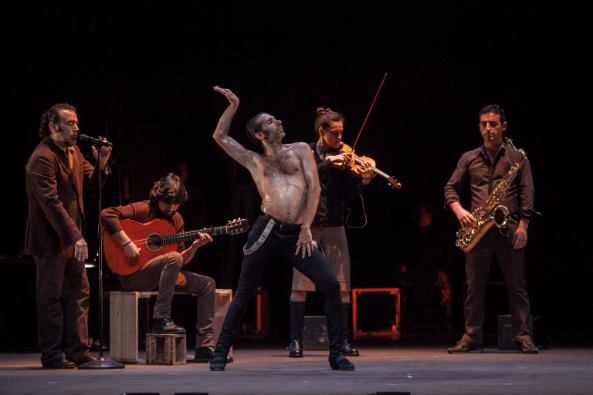 Αυτή τη φορά, ωστόσο, στη Στέγη Γραμμάτων και Τεχνών, ο «αλχημιστής» ισπανός χορευτής και χορογράφος επιχειρεί να αναμετρηθεί με το αδιανόητο. Και πρόκειται για μια γενναία υπαρξιακή και φιλοσοφική αναμέτρηση. Με το έργο του The Real (Lo Real) καταπιάνεται με το αντικείμενο της εξολόθρευσης των τσιγγάνων από τους Ναζί στις δεκαετίες του 30 και 40 και επιδιώκει να μας κάνει να διερωτηθούμε: Είναι τελικά δυνατό ή αδύνατο να αποτυπώσει κανείς μέσα από το avant garde flamenco τις πολλαπλές όψεις και αλήθειες της (ιστορικο-πολιτικής) πραγματικότητας, καθώς και την πολυεπίπεδη και πολύπλευρη βιωματική εμπειρία που την συνοδεύει; Πώς μπορεί να φωταγωγηθεί και να αποκρυπτογραφηθεί από πολλές μεριές η τραυματική σχέση μεταξύ φασισμού και ανθρωπότητας και σε τι μπορεί να αφορά; Τί μπορεί να μας αποκαλύψει για την ανθρωπινότητα, την εξουσία επί της ζωής, τη θανατοπολιτική και τη ζωή κοντά στο θάνατο; Και τί κρύβεται πίσω από το αξεδιάλυτο σύμπλεγμα αποστροφής, βίας και έρωτα; H γοητεία για τον θάνατο; O απελπισμένος αγώνας για επιβίωση και για, όσο το δυνατόν, εντονότερη ζωή;