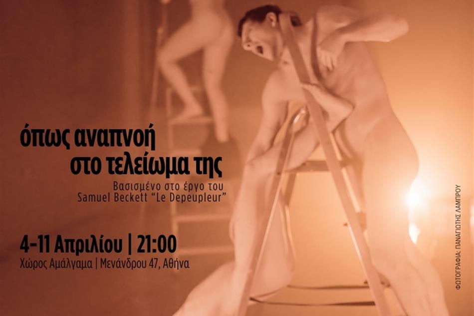 Με κεντρική επιρροή το έργο του Samuel Beckett Le Depeupleur, το νέο έργο της χορογράφου Μαρίας Γοργία και της ομάδας Αμάλγαμα “όπως αναπνοή στο τελείωμά της”, εκτυλίσσεται σε έναν χωροχρόνο ύστερο κι αλλοτινό, κατοικημένο από σώματα τα οποία βρίσκονται σε μια κατάσταση φθοράς, ψυχοχοσωματικής κούρασης και εν αναμονή ενός είδους λύτρωσης.