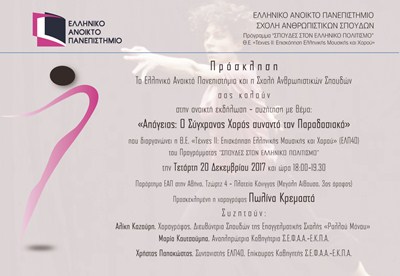 "Σπουδές στον Ελληνικό Πολιτισμό" και της Θεματικής Ενότητας "Τέχνες ΙΙ: Επισκόπηση Ελληνικής Μουσικής και Χορού".
